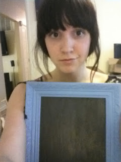 I bought a white, vintage looking photo frame. I painted the white frame with a really pretty blue color. Let dry. Easy! I write the date on mine every day in my office.