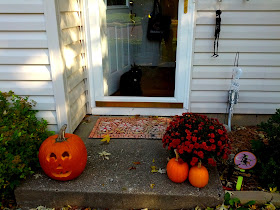Okay...okay...onto the exciting part...pumpkin carving today. My porch is finally fallish looking!